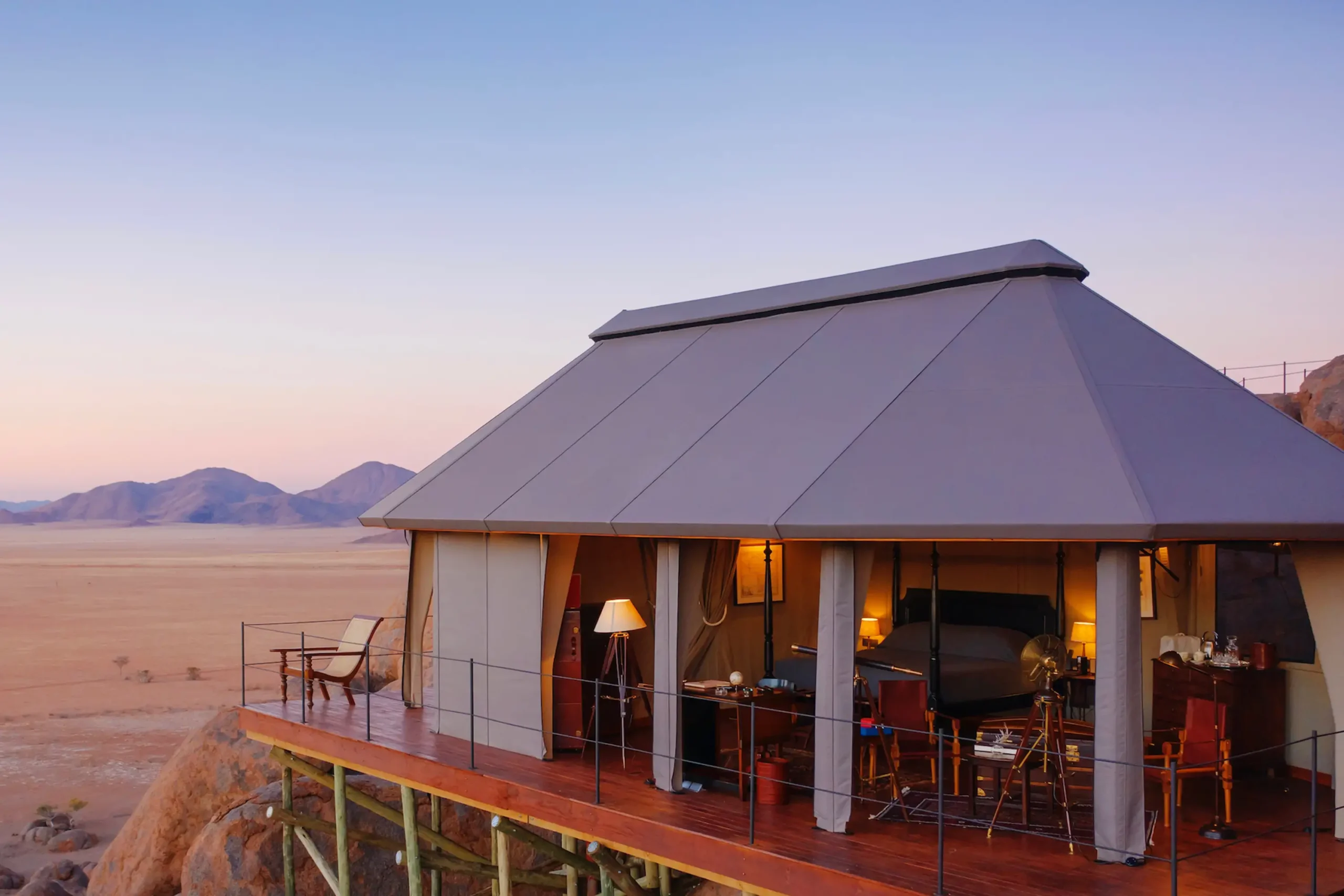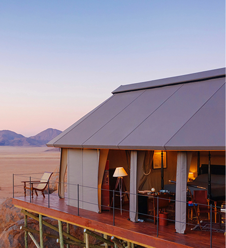 1920’s safari lodge with 10 tented suites and 13,800 private acres of private nature reserve in Namibia, one of the world’s most extraordinary desert landscapes.